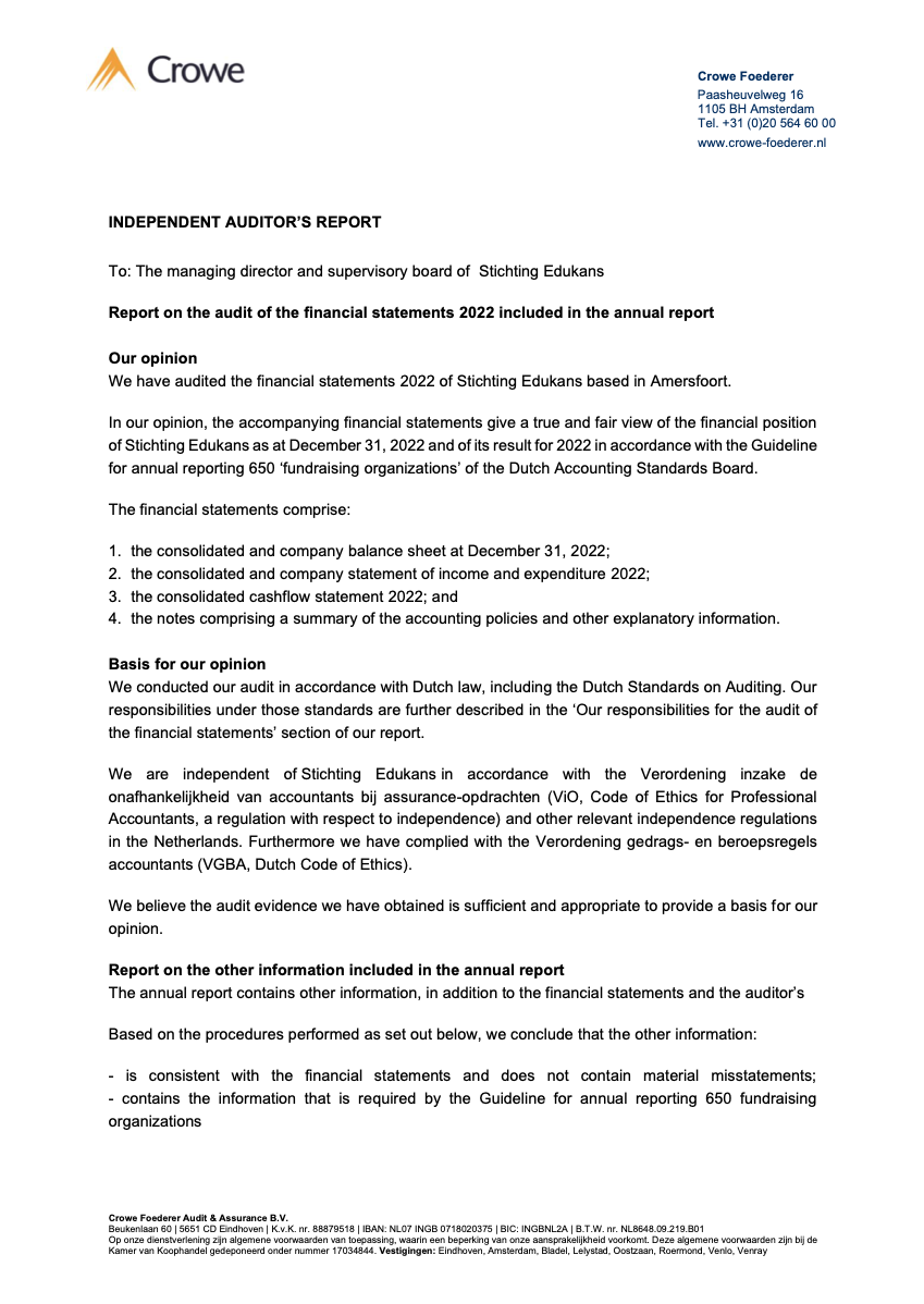 2022 was a year of transition for Edukans. We adjusted our programmes and funding strategies to align with the rapidly changing global and national environment we are working in. The development of our borderless governance and organisation is taking shape and colleagues are working together on the design and implementation of our education and operational services.