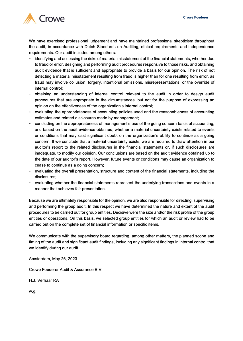 The 2022 annual accounts were adopted by the management and approved by the Supervisory Board at the meeting of May 24, 2023.